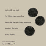 This microbiome food supplement can help your child's gut flora balance. KIKI Health Body Biotics Gummies are produced with genuine non-GMO fruit ingredients that have not been treated with hazardous pesticides.