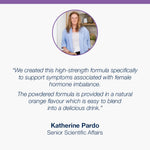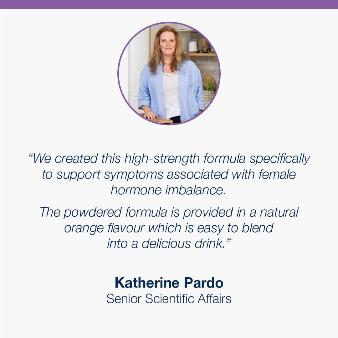 • Our hormone balance powder is available in a tasty citrus orange flavour that mixes easily into water or juice.